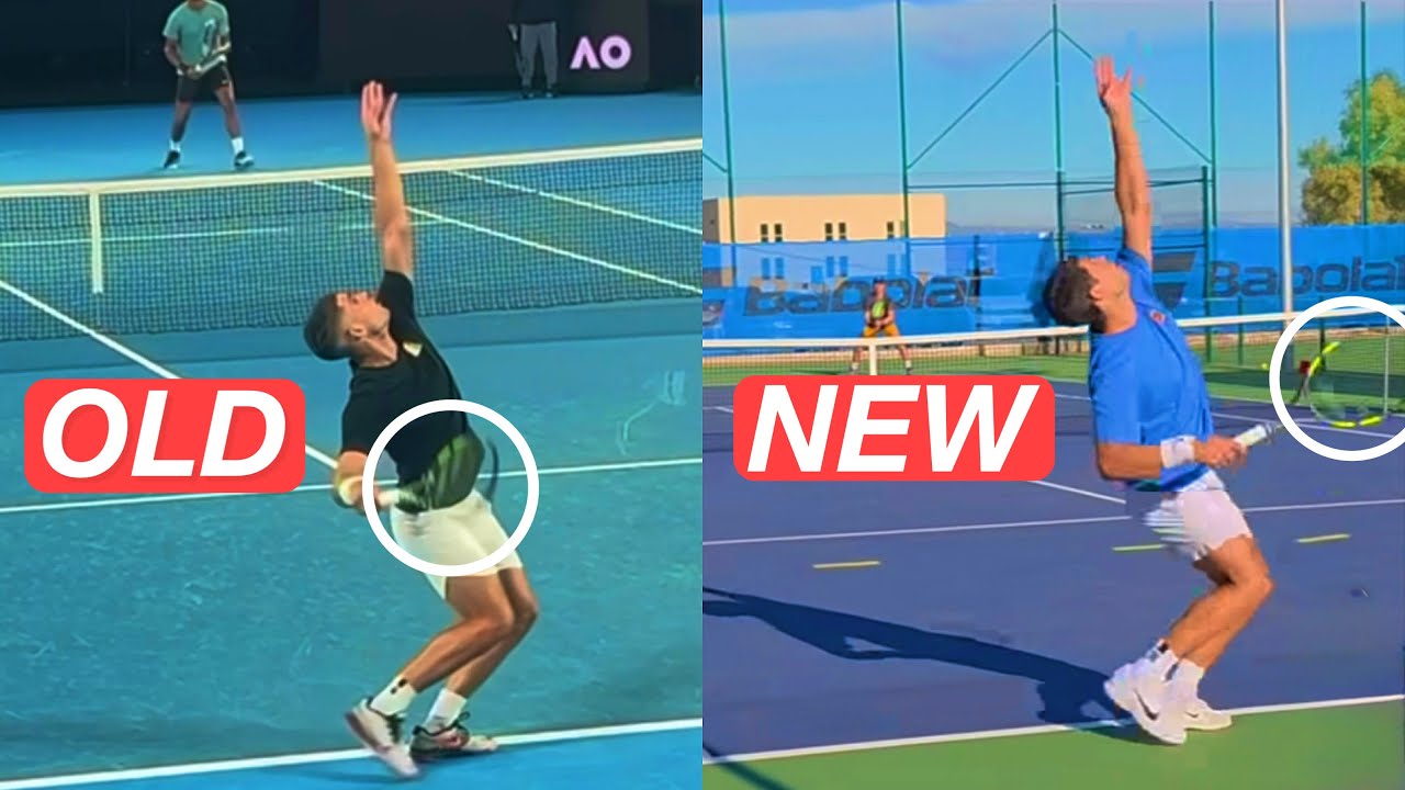 Despite being number one in the world, Carlos Alcaraz is still working on his game, seemingly changing his service motion constantly.