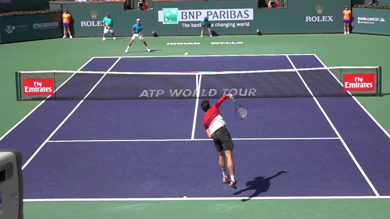 Milos Raonic slice serve to Novak Djokovic slomo BNP Indian Wells​: