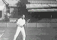 I was shocked by how similar Little Bill's and Gonzo's forehand preparation looked. Observe the way in which each man lifts the racquet over his head, pointing the hitting side of the stringbed towards the sky. They also have a similar low follow-through, at about the left elbow. I don't understand how anyone can say the modern game is entirely different from the game of the past. The technology and the conditioning of the players has gotten better, but come on!