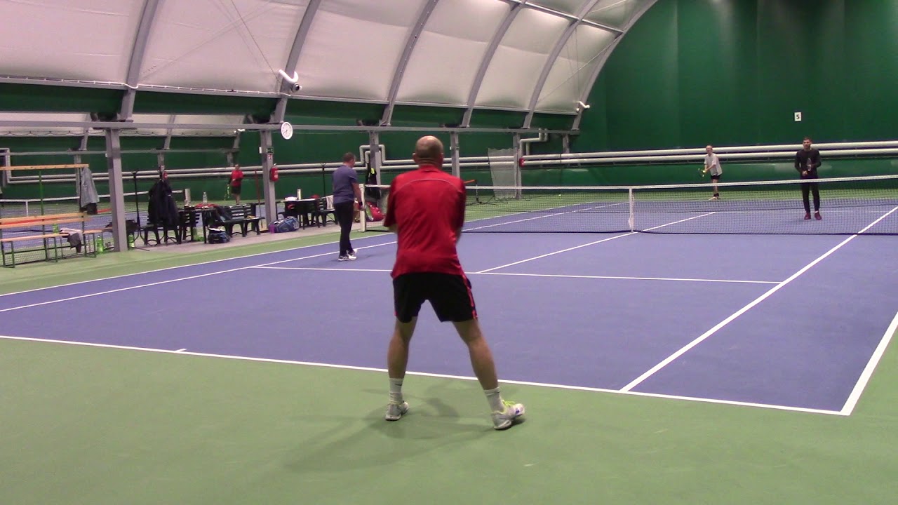 I dont agree with you. In most cases my back leg goes to the front just after the stroke. It is because I use my body to accelerate the ball. I am not too strong and I have an injured right wrist so on such fast surfaces when the ball is really fast I have to block the ball. It looks as if I stopped the racket just after the contact with the ball. The real reason is that the ball stopped my movement. That is why I am much better player on clay. But I agree that I rely more on placement/depth/consistency. I am a very good runner so I dont have to hit too many winners to win a match. The longer we play the worse for my opponent. The surface in this video is carpet with quartz sand. It is too fast for me.