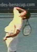 The interesting thing about Roger is that his drop isn't as deep as either Andy or Pete. You might argue that this is actually a function of the longer backswing and that he should shorten his motion. But I think it's the opposite. What I see is that Roger's shoulder doesn't seem to be quite as superhumanly flexible. That's why I think the longer more circular wind up probably maximizes his racket drop.