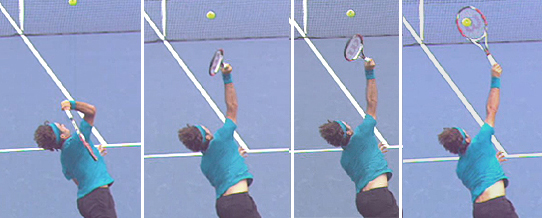 In the last article we looked at the complex factors in the upward swing of the serve of Roger Federer. (Click Here.) The next logical question to ask is how does Federer (or any other top player) vary these factors to control the direction of the shot?