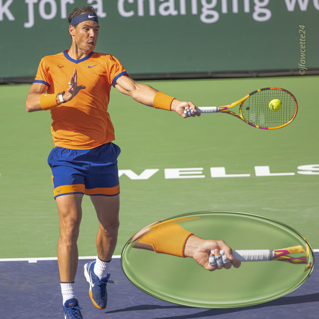 When we look at Nadal, the most distinctive thing about his grip is how far off the handle his hand actually is. It looks like the butt of the racket is in the center of his palm.