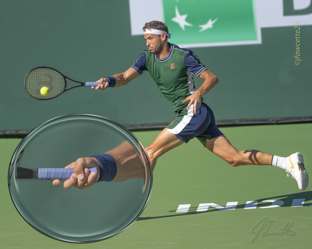 Try it yourself. Start with a 3 /3 classic eastern and slide your hand partially off the racket. It looks different than Grigor with the hand more fully behind the handle but also like the handle is being cradled in the palm of the hand.