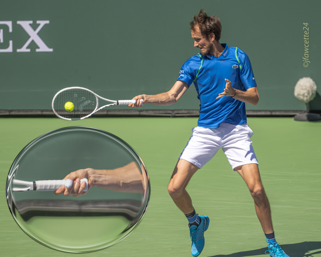 Daniil Medvedev may have a slightly more conservative grip even than Grigor. His index knuckle may actually be partially on bevel 2, with the heel pad slightly off the handle. Is that a 2 and 1/2 /3?