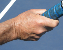 Do not guide your volleys with long finishes unless the oncoming ball is very slow. Your squeezed grip feel will have a bit more pressure on your last three fingers, not your thumb and first finger.