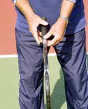 Look at how the player holds the racket, then ask him to open his hand. This will show you the exact position of the