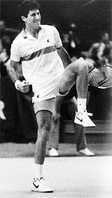 In 1986, Boris Becker was still near the top of his powers and was the heavily favored player going into the round of 16 match against the scrappy Gilbert. The widely predicted result seemed inevitable when Boris won the first two sets easily and then won the first three games in the third.