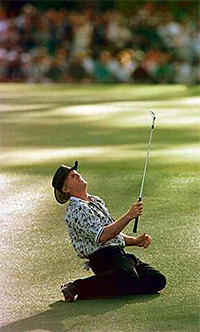 In 1996 Greg Norman took a six-shot lead into the final round of The Masters, shot a 78 and lost to Nick Faldo by five strokes, and in 1999 Jean van de Velde had a three-stroke lead going into the final hole of the US Open Championship, needing only a double-bogey 6 to win. He managed to shoot a 7 and eventually lost in a playoff.