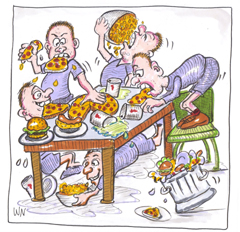 Devouring snacks and leaving the trash--a Gladiator trademark. |