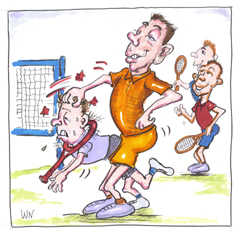 Toward the end of the season, "Peter," one of our starting doubles players, quit the team because Mike, our number one player, had been harassing him both verbally and physically. To be honest, I had seen some of this harrassment in its gentler forms over the course of the season, but I had pretty much written it off as "guy stuff."