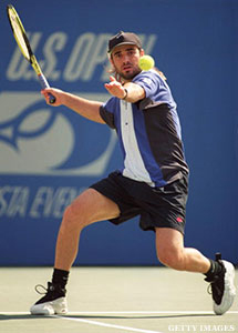 Against Pete, that serve was so heavy, it was like trying to return a bowling ball with a badminton racket. (Click Here for an actual quantitative comparison between the speed, spin, and "weight" of the serves of these two great players.)