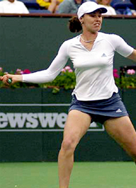 In the current game, we can point to Dominik Hrbaty who has an incredible retrieving style and a willingness to hit up to dozens of balls to win one point. Kim Clijsters is a more athletic, more powerful modern day version of Evert, with a very calm and pleasant demeanor. David Nalbandian is another player who plays up on the baseline but still uses a neturalizing and counterpunching style. Lleyton Hewitt is an example of a player who mixes a yellow style with a dose of the fierier Red temperament.(See below.) At the pro level, pure yellow players have become fewer because of the overall increases in sheer firepower.