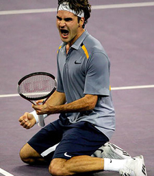 Roger had run down three balls covering the widest points on the court, transited to offense in a blinding flash, hit a brilliant artistic winner, clinched the match, and for all practical purposes, the Masters title as well. So yes, that was pretty great to watch and, yes again, thanks to Tivo, I have reviewed the sequence a few times.