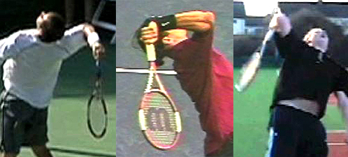 In fact, if you look at Roger Federer's motion, it appears clear that he can't rotate the upper arm back as far as Sampras. You can see that his racket doesn't fall as far, with the tip reaching down to a little below his waist.
