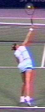 The 3 Dimensional studies that I have seen to date appears to show that the racket head speed is actually fairly constant over the path of the windup. Most of the acceleration occurs in the few fractions of a second from the racket drop to the contact. This is why a higher toss and a longer, slower backswing doesn't necessarily reduce racket head speed. When commentators say that players with higher tosses will struggle more in the wind, it seems they have a more valid point. But I recently saw Kiefer serve very effectively during hurricane-like conditions in Las Vegas. Let's just note again that virtually every great server in the history of the game hits the ball on the way down, and some, like Ivan Lendl, Boris Becker, and Steffi Graff have had ultra high tosses. If there really was some huge advantage to the low toss, it would be a commonality among top players. But it's the opposite. All the top players have high tosses, not low tosses.