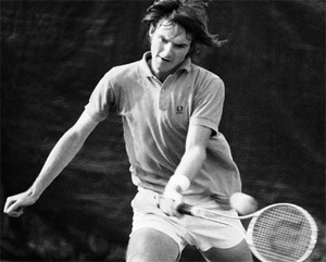 Most players found controlling the ball quite difficult with this erratic new racket, but after so many years of accuracy drills with his Mom, Jimmy's consistency in hitting ground strokes made the racket an ideal weapon.