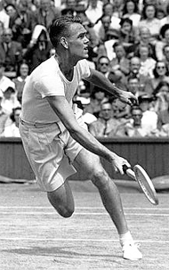 By 1947, with the amateur game reorganized after World War II, the eyes of the tennis world were on a hot young player named Jack Kramer. One of Perry Jones' "golden boys" from the L.A. Tennis Club, Kramer was tall and handsome. (Click Here for the amazing story of Perry Jones and his unique strangle hold on world tennis.)