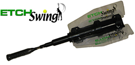 Here the player is fed three short balls in the midcourt. The idea is to kill the ball moving forward abd wide, then moving directly forward, and then moving up and around the ball to an inside position. The player starts at the baseline, sprints to the ball, loads and explodes, and then recovers to the baseline. The player is then fed the second ball. After the kill, the player recovers again, and then receives the third ball, etc. The coach can vary the positions of the feeds as the player gets the feel for the drill. This is a great attacking movement exercise, emphasizing maximum whip and racket speed. It works on the most common kill shot situations, building the player's comfort and confidence in finishing the point. To develop a great forehand weapon, players need to have no fear in pulling the trigger and ripping a big forehand. These midcourt kill shots are not practiced nearly enough by most American coaches, in my opinion. One of the separations between mid-ranked national players and top ranked international/national players is the consistency of their kill shots. Most highly ranked kids are pretty solid laterally, but the best kids move forward on the diagonals, jump all over short balls, and rip them for winners consistently. Hey club players, it can be the same for you. All these drills apply. You just have to practice the shots you actually want to hit in matches, that is, if you actually want to hit them in matches, instead of merely dreaming about doing it. EtchSwing Trainer Renowned physical trainer Pat Etcheberry (Click Here to see his training system on Tennisplayer) developed this swing trainer and I like to use it in workouts with my players. I'm not big on gimmicks, but I've found this swing trainer to be valuable tool. It looks cool and the kids always enjoy working with it. For more info about getting an EtchSwing, Click Here. Players can perform sets of 10 to 15 repetitions. They can use the trainer off court, or even on the court when waiting for the next drill in group situations. I like this drill because the player is actually building strength by practicing the correct technical swing. Here, I have one of my future superstars using the trainer to build that big forehand gun. He's 9 now but watch out when he hits 16. He's going to have a weapon of mass destruction. Etch Swing Superset This is a great superset drill. Work the Etch Swing 10 times and then immediately transition to the regular racket for 10 more reps, what the Spanish call The Wind Exercise. The Etch Swing makes the racket feel like a toothpick in the player's hand and this makes this drill a great way to work on whip. The classic Spanish wind exercise can also be performed solo for 10-15 repetitions. The goal is for the player to load and unload, accelerating the racket so fast, one can hear the wind whistling through the strings. This drill is analogous to working the speed bag or shadow punching in boxing.