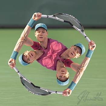 Imagining what it's like trying to hit through Jannik Sinner. Original photo and artwork ©jfawcette.