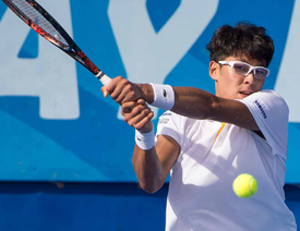 I didn't even notice Hyeon Chung was in the draw at Delray until his run to the Australian semifinal. I watched him practice and then come from behind to win in 3 sets in his first match. The guy's groundstrokes are probably close to as good as anyone. Fluid and powerful. A straight arm forehand and an explosive backhand. He can hit short and long, with great control of angles.