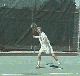 All this is very similar to what my fellow contributor Bungalow Bill has written in his excellent analysis of Mark Phillippoussis's one handed backhand. As Bungalow Bill writes of Philippoussis: "His arm is basically a lever that is connected to a hinge known as his shoulder joint...This allows his racket to stay on course to hit the ball cleanly. The racket is not pulled away or sideways towards his right side which causes numerous errors." (Click Here to read the entire article.)